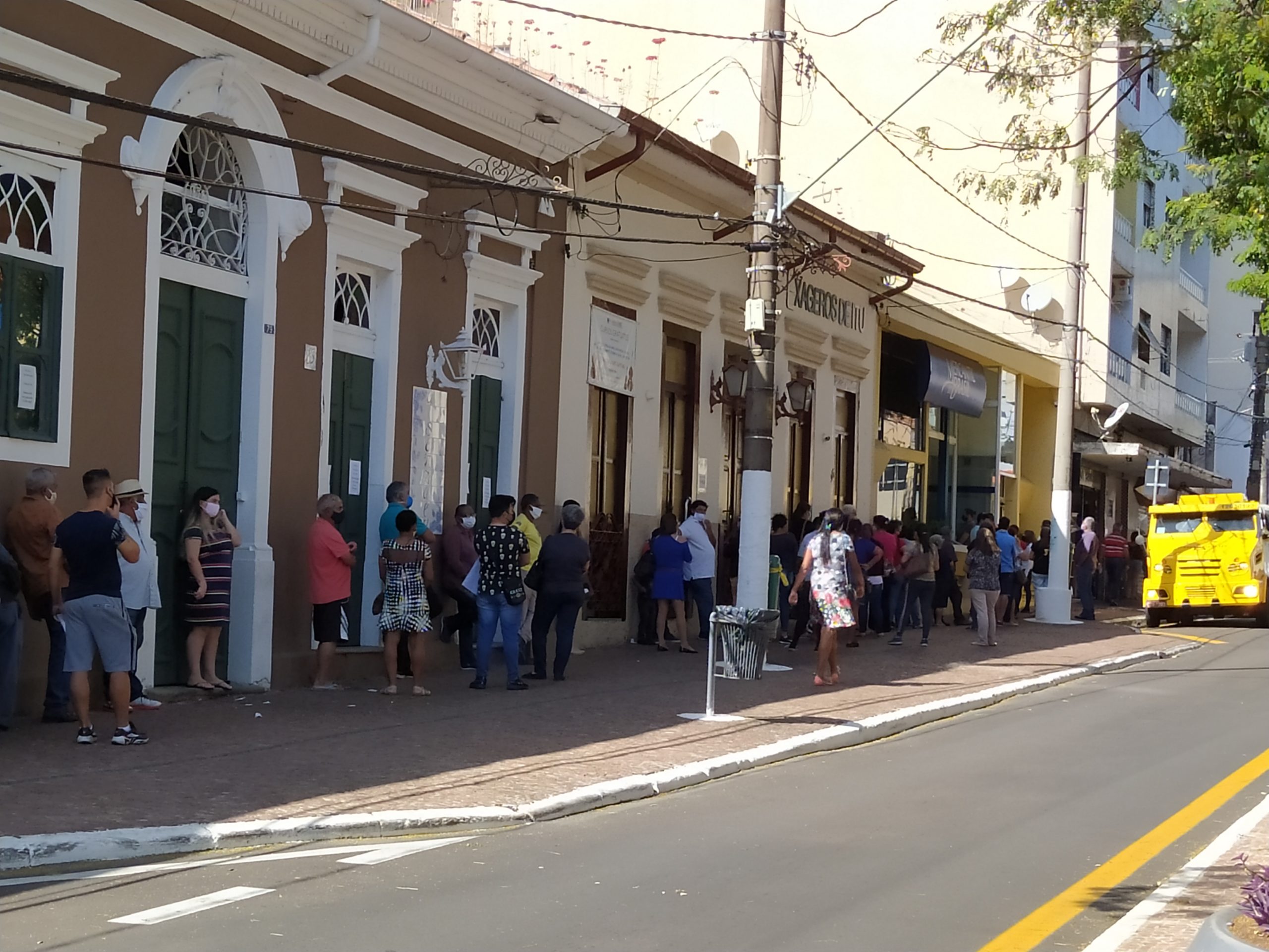 A reportagem do Periscópio continua flagrando diversas aglomerações em bancos localizados na região central de Itu. A princípio as aglomerações ocorriam principalmente na Caixa Econômica Federal, por conta do pagamento do Auxílio Emergencial, porém estão sendo vistas em todos os bancos no início do mês, quando ocorre o pagamento da maioria das empresas.