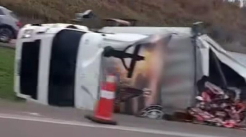 Carreta com 20 toneladas de ração tomba em Itu