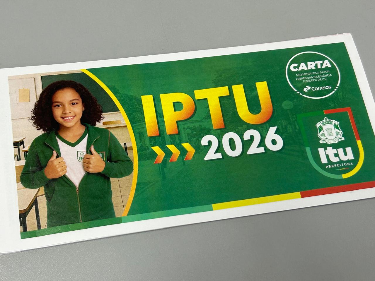 A Prefeitura de Itu lembra que, os munícipes que desejam pagar o IPTU em parcela única e com 5% de desconto, devem ficar atentos, pois o vencimento acontece no dia 30 de janeiro. Uma segunda opção é pagar em parcela única no dia 27 de fevereiro, com 3% de desconto.