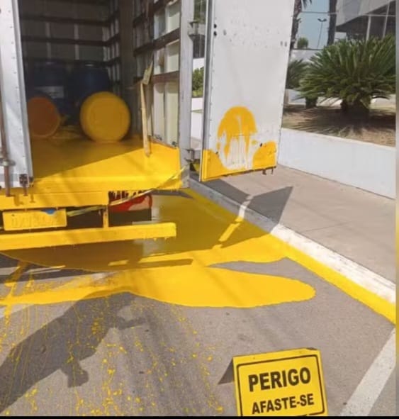 Tambor contendo tinta tomba em caminhão e suja avenida no bairro São Luiz
