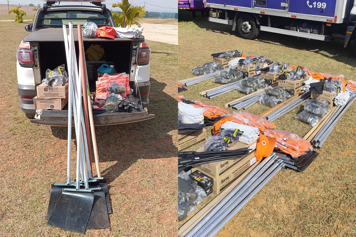 O kit, que integra a Operação SP Sem Fogo, é composto por abafador para incêndio, cantil, facão com bainha, luva de raspa, óculos de proteção, bomba costal flexível, enxadão, lanterna, coletes operacionais e bonés operacionais. A iniciativa do Governo do Estado de São Paulo tem como foco apoiar os municípios durante o inverno, quando há maior risco de incêndios florestais em decorrência do clima seco.