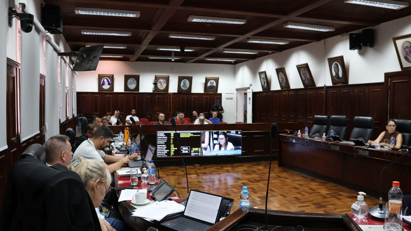 Em 1ª discussão, foi aprovado por unanimidade o Projeto de Lei Nº 3/2026, de autoria de José Galvão, que denomina a Rua 5, no Jardim Monte Rei, como Rua Professora Iraceli Angelieri Borba. Em seguida, teve início a votação do Projeto de Lei Complementar Nº 1/2026, de autoria do Executivo, que altera dispositivos da lei complementar nº 710, de 20 de dezembro de 2005 – o Código Tributário Municipal.